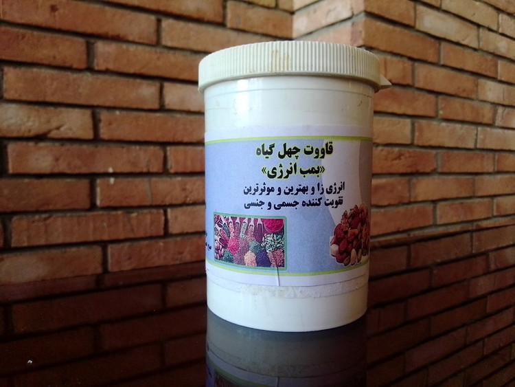 حاوی ترکیباتی چون انواع مغزیجات،پودرسنجد،جین سنگ و...
